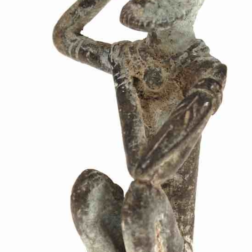 This male figure is very typical of the Dogon people and employs the lost wax brass casting technique typical among many African peoples. It measures:2 5/8 x 1 3/8 x 1 7/8″ (7 x 3.5 x 5 cm)
