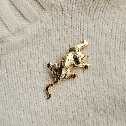 DESCRIPTIONStraight from the 1980’s, this vintage cat brooch is the perfect addition to a jumper, lapel, scarf or bag. Crafted in the 1980’s in England and then stored away, each brooch is genuine, unworn and brand new, vintage. Crafted from an alloy base metal and plated in 22ct gold. SIZINGMeasures approx. 7.5cm at widest point and 3.5cm high at highest point. GOOD TO KNOWAs the GT Vintage range is genuine vintage, each piece will be unique and may have minor imperfections. Extra care should be taken during wear and pieces should not come into contact with water, sweat, perfume and other substances that may damage its finish. Please note vintage jewellery is made from brass/copper/alloy metals and then plated with gold and therefore may contain nickel – those allergic to nickel should avoid allowing the jewellery making contact with the skin. PACKAGINGDelivered in a Gold Trip presentation box, perfect for gifting yourself or others.