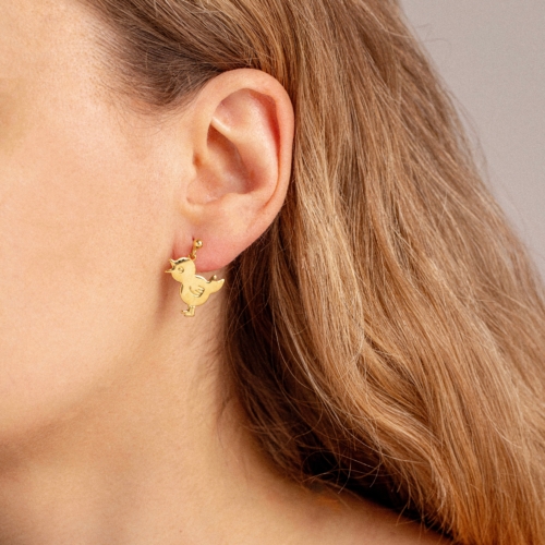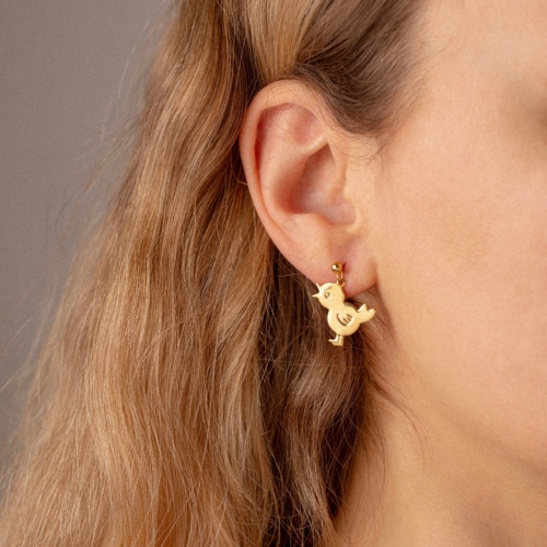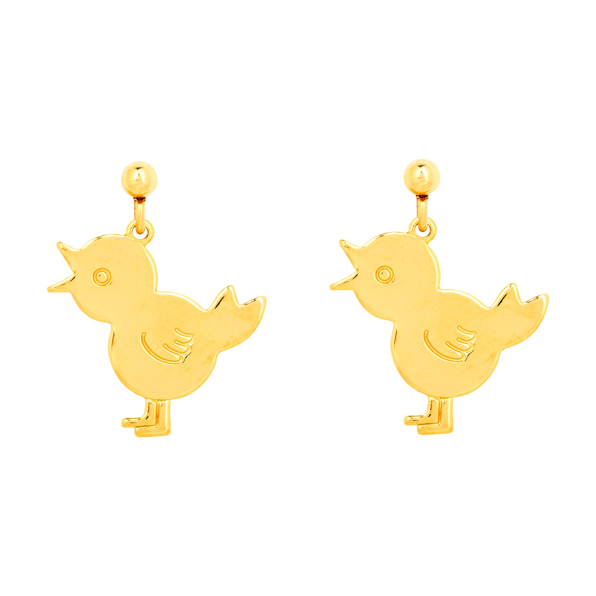 DESCRIPTIONCute and quirky, these little chicks come with high shine. Originally crafted in the 1990s and placed into storage, they’re made from an alloy base metal and plated in a high-polished 18ct gold finish. Supplied with butterfly backs. SIZINGFull earring drop measures approx. 23mm. Width at widest point measures approx. 19mm. GOOD TO KNOWAs the GT Vintage range is vintage, each piece will be unique and may have minor imperfections. Extra care should be taken during wear and pieces should not come into contact with water, sweat, perfume and other substances that may damage its finish. Please note vintage jewellery is made from brass/copper/alloy metals and then plated with gold and therefore may contain nickel – those allergic to nickel should avoid allowing the jewellery making contact with the skin. PACKAGINGDelivered in a Gold Trip presentation box, perfect for gifting yourself or others.