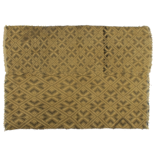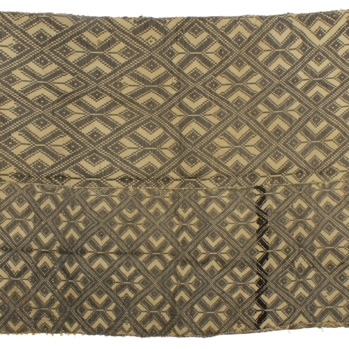 From the mountains of Northern Vietnam, resides the Muong ethnicity. Their signature handwoven blanket, used by the people for warmth during the rainy season of Vietnam. Where temperatures can get well below freezing. With a stunning central woven panel of natural indigo, black, and gray dyes consisting of two bands roughly 12″ each. Many blankets in their full form will have a boarder around the central panel to increase its size. Sometimes the boarder may be removed before selling, or replaced with a newer boarder when the previous gets old. The approximate age is over 40 years, which is sometimes quite evident by patches of fading color or repairs of different colored threads. This blanket measures 50″ x 34″