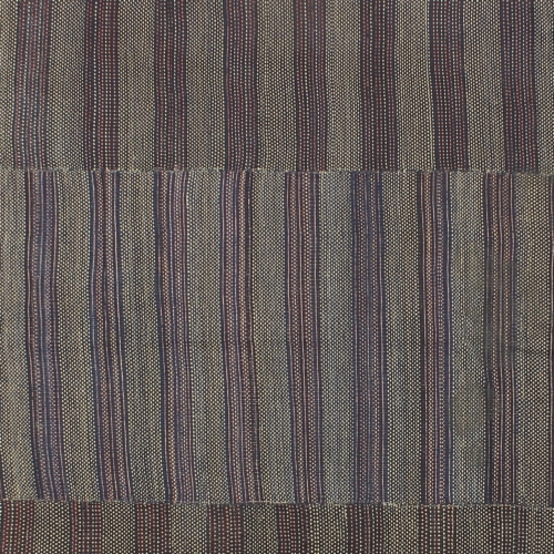 Woven over 35 years years ago and used as a quilt in northern Vietnam.Woven and embroidered by women using natural dyes that are available in their region.This quilt is made of natural cotton with colors such as black, red, white, and indigo.The pattern of the textile is visible on both sides and consists of 3 panels sewn together. This quilt measures 61″ x 45″
