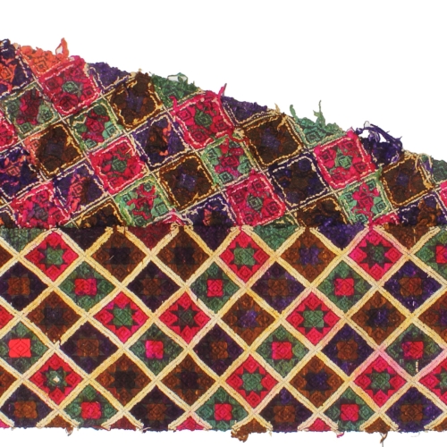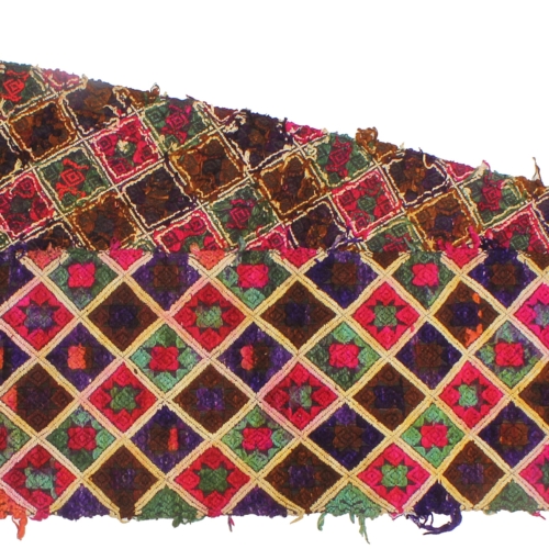 From the mountains of Northern Vietnam, resides the Tay ethnicity. Some may refer to them as “White Tay”. The people of this ethnicity are typically known for their technical embroidery and handwoven blankets, used by the people for warmth during the rainy season of Vietnam. Where temperatures can get well below freezing. Their textiles can be most commonly recognized by their diverse range of colors from dyes that they produce from surrounding plants and trees in the environment. A few examples are betel, mango, and coffee leaves. What makes this quilt so impressive is that the textile is woven from silk. A single cocoon of silk from the silk worm will create a thread roughly 2000 feet long. However, it takes over 4,000 cocoons to create a single pound of silk. The silk worm is only alive for roughly 1 week before it begins its transformation into a moth. Silk worms are only active from the late spring to early fall months due to their intolerance to heat and cold. Thus it is an outstanding effort on behalf of the community to create such a wonderful textile. This textile features a stunning central woven panel consisting of two bands roughly 13″ each. Many blankets in their full form will have a boarder around the central panel to increase its size. Sometimes the boarder may be removed before selling, or replaced with a newer boarder when the previous gets old. The approximate age is over 50 years. This quilt measures 114″ x 14″