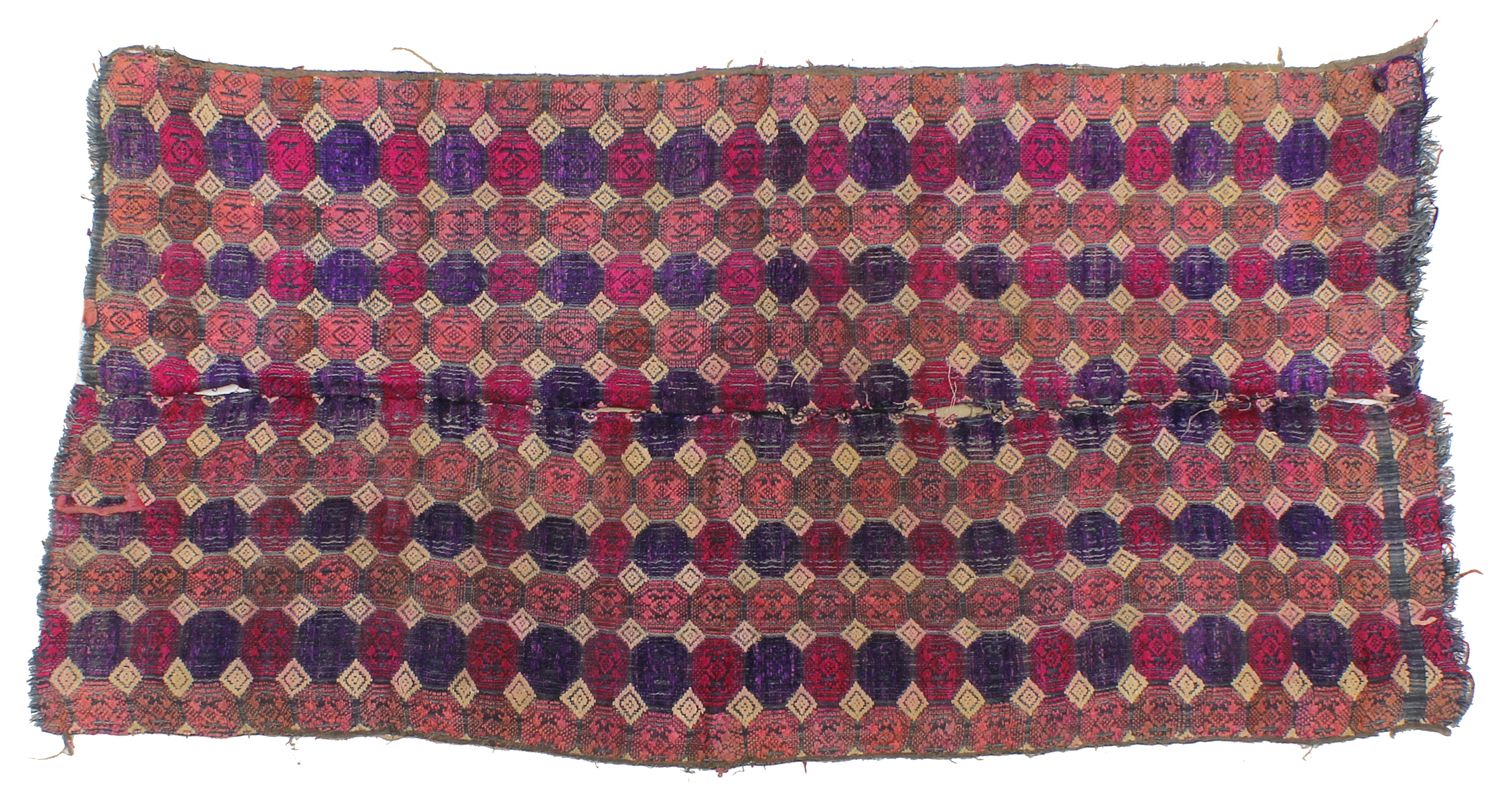 From the mountains of Northern Vietnam, resides the Tay ethnicity. Some may refer to them as “White Tay”. The people of this ethnicity are typically known for their technical embroidery and handwoven blankets, used by the people for warmth during the rainy season of Vietnam. Where temperatures can get well below freezing. Their textiles can be most commonly recognized by their diverse range of colors from dyes that they produce from surrounding plants and trees in the environment. A few examples are betel, mango, and coffee leaves. What makes this quilt so impressive is that the textile is woven from silk. A single cocoon of silk from the silk worm will create a thread roughly 2000 feet long. However, it takes over 4,000 cocoons to create a single pound of silk. The silk worm is only alive for roughly 1 week before it begins its transformation into a moth. Silk worms are only active from the late spring to early fall months due to their intolerance to heat and cold. Thus it is an outstanding effort on behalf of the community to create such a wonderful textile. This textile features a stunning central woven panel consisting of two bands roughly 13″ each. Many blankets in their full form will have a boarder around the central panel to increase its size. Sometimes the boarder may be removed before selling, or replaced with a newer boarder when the previous gets old. The approximate age is over 50 years. This quilt measures 46″ x 23″