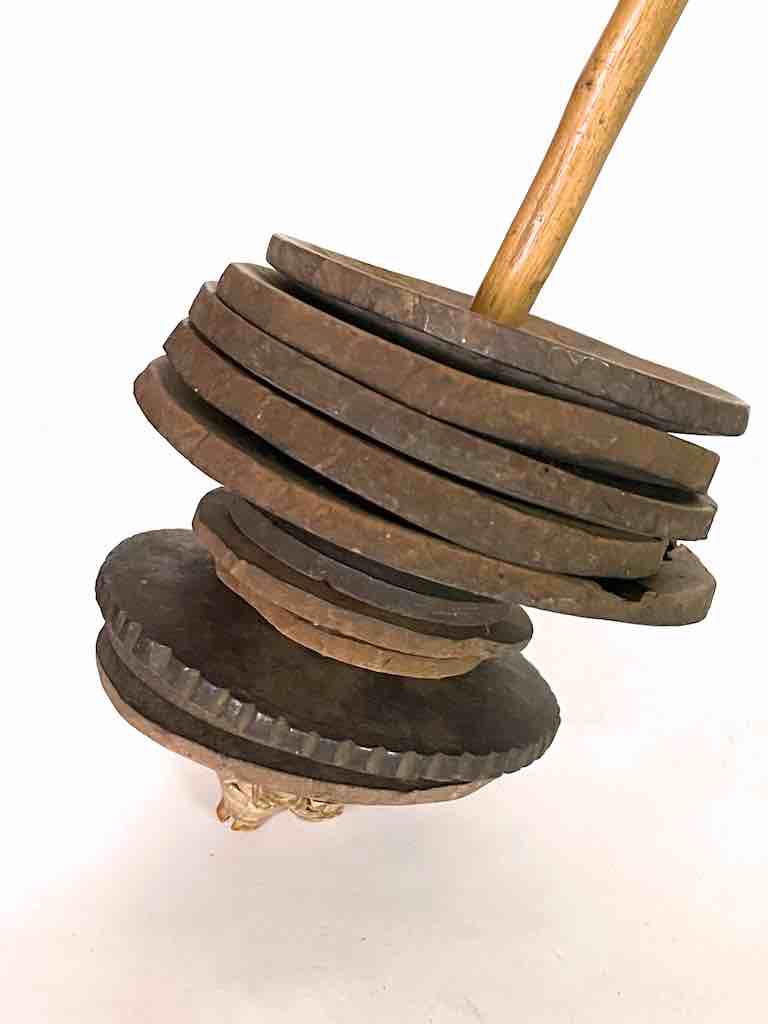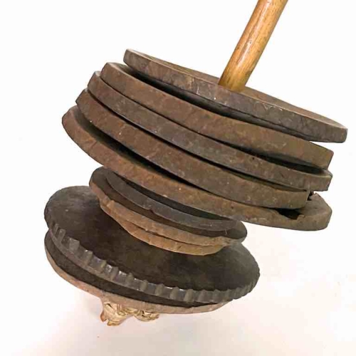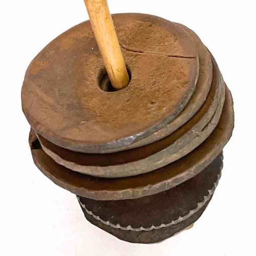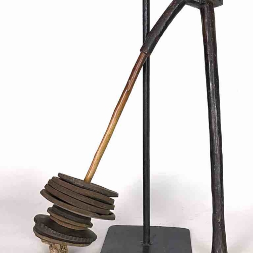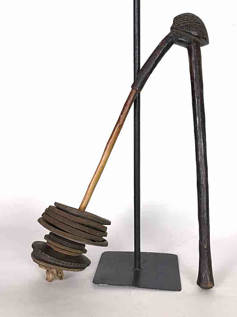 This is a beautiful very well used and patinated vintage authentic version of a common percussion musical instrument in Mali. Smaller, simpler versions are used by children and especially popular among members of circumcision classes in northern Mali (please see attached video). This one is a more “professional” version that would have been played in a village on occasions of celebration. This instrument measures: 21″ tall (53 cm) We used a display stand for photography purposes but this is NOT included in the purchase of this product.