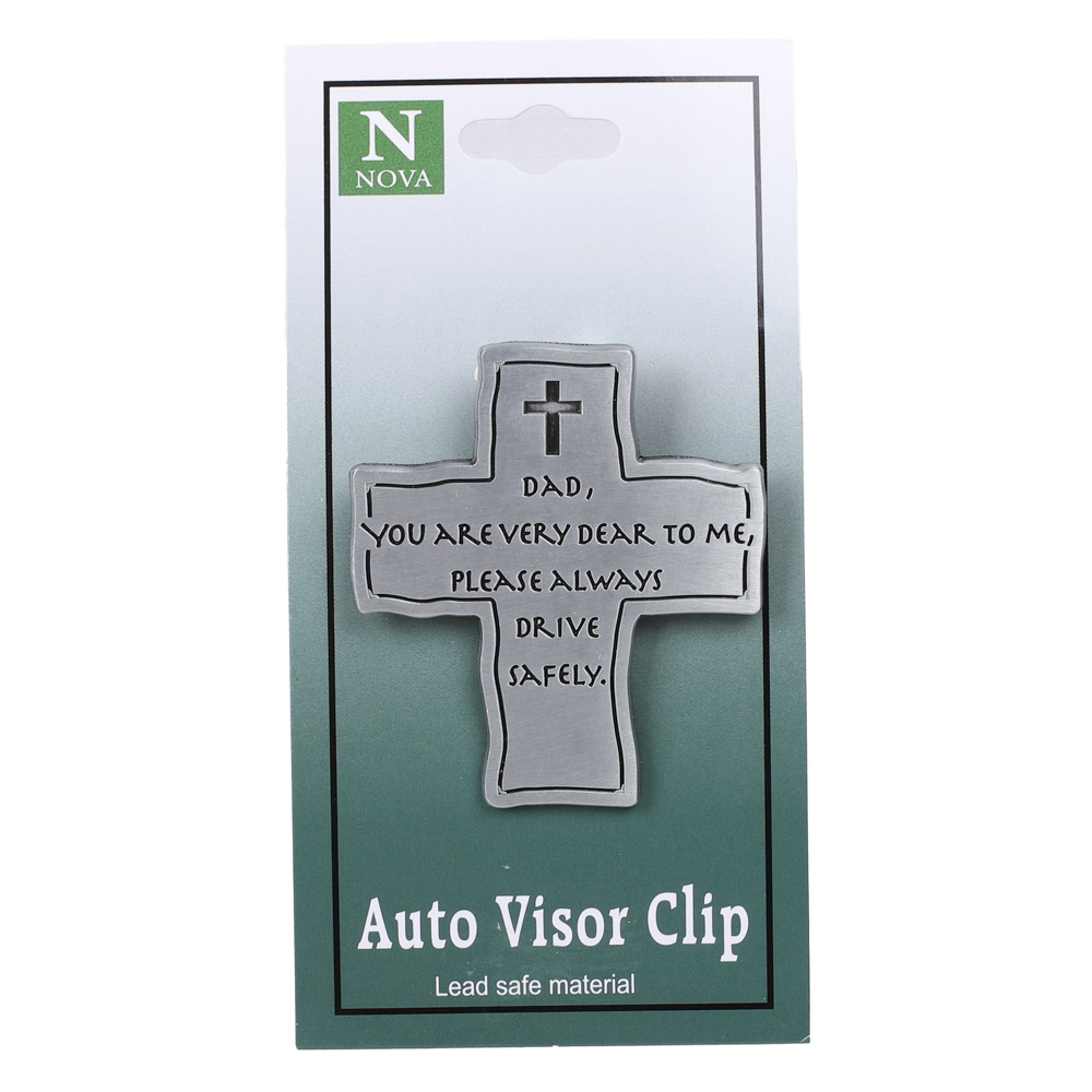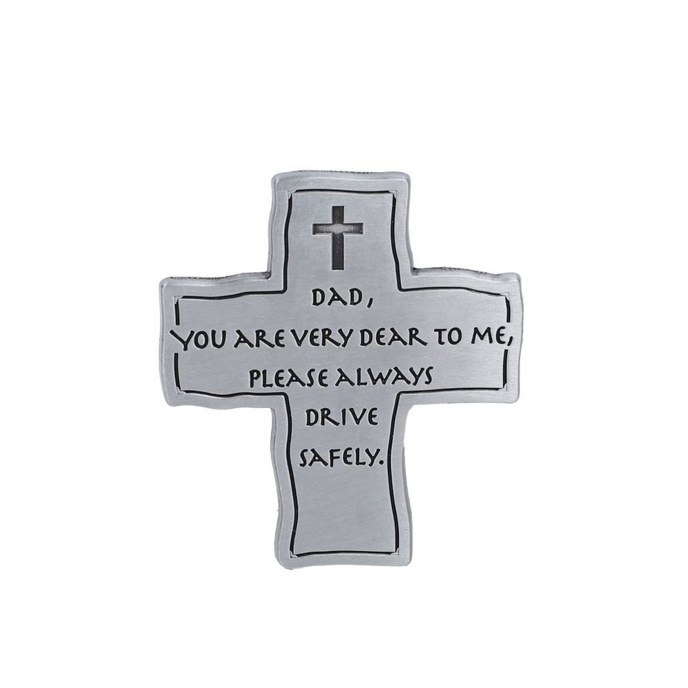 Keep your dad protected on every journey with this rugged cross-shaped visor clipóa meaningful reminder of faith and safety. Crafted from durable metal with a sleek silver finish, this sturdy accessory clips securely onto any car visor. Measuring 1.875L x 2.125H, its cross shape symbolizes faith, while the engraved message, Dad, you are very dear to me, please always drive safely, offers love and protection.