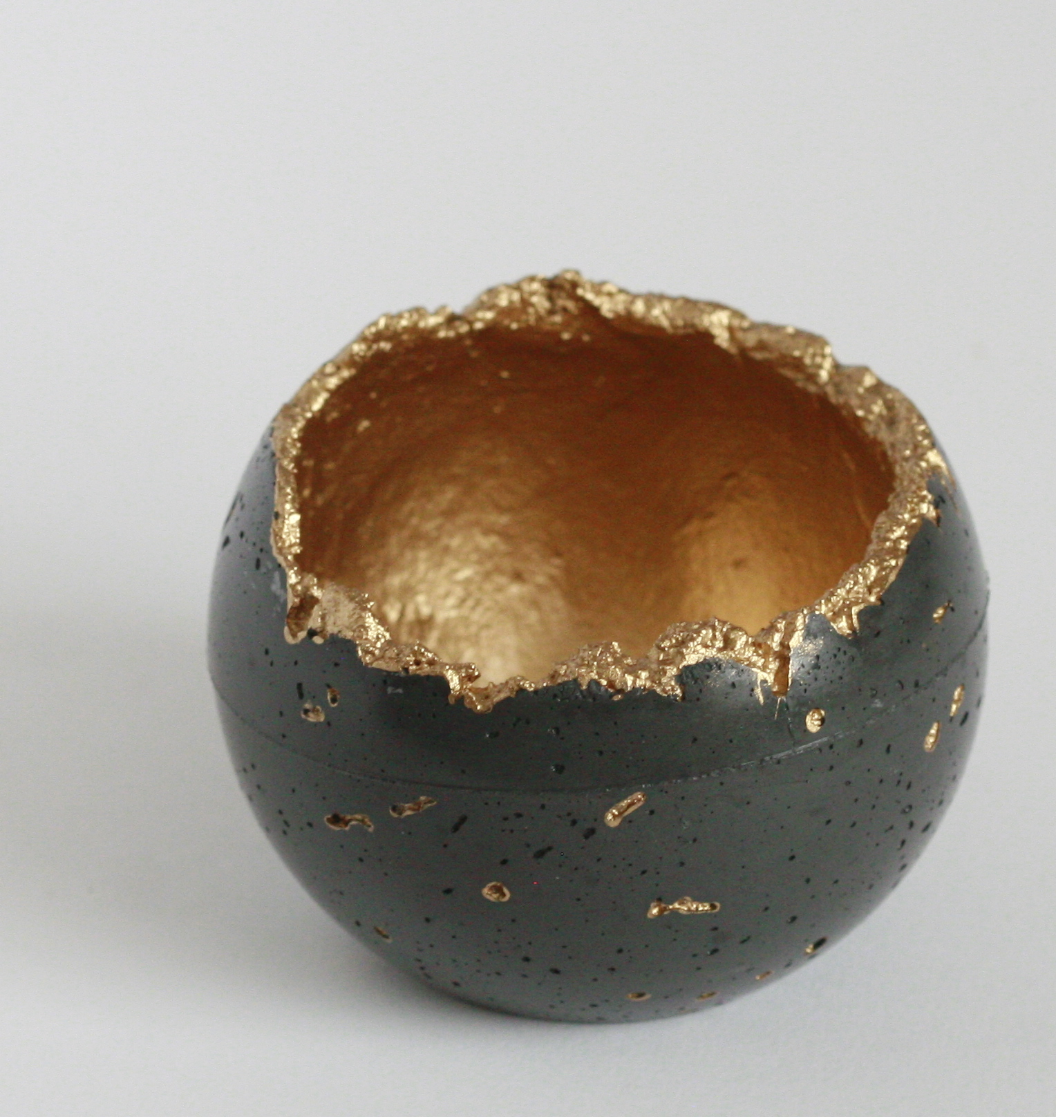 Concrete Candleholder / Decorative Bowl has been hand painted with Water based Metallic Gold paint and sealed with eco top coat.