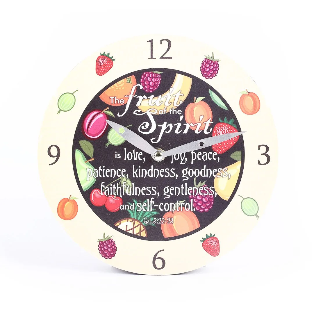 Add a touch of faith and positivity to your space with this Fruits of the Spirit Wall Clock, a perfect blend of simplicity, vibrancy, and functionality. More than just a timepiece, this beautifully designed clock serves as a daily reminder of the virtues we strive to embodyólove, joy, peace, patience, kindness, goodness, faithfulness, gentleness, and self-control.