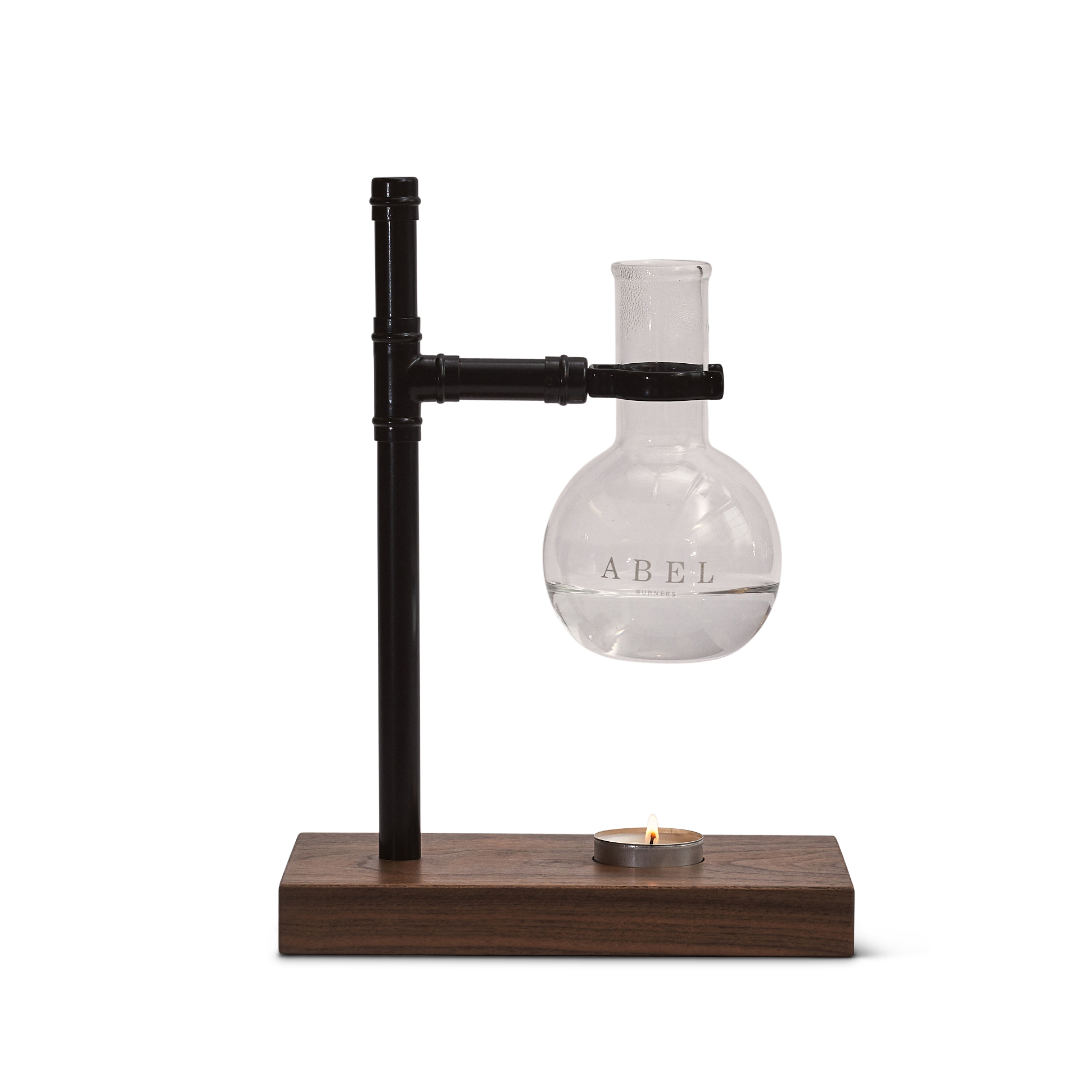 The Abel Walnut & Black Essential Oils Burner. Handmade in Cornwall with love by a family business. This premium walnut base is deeper, and contains a recess for your candle.
