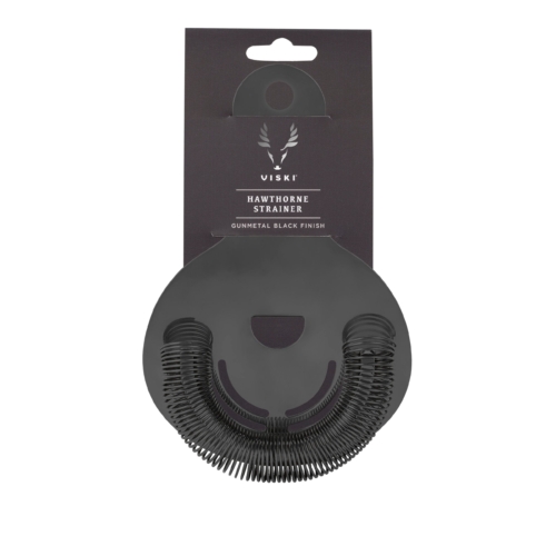 An unobtrusive flat handle, broad face, and tightly coiled spring define our professional-grade gunmetal black Hawthorne strainer, while two symmetrical sets of perforations provide the bonus of making split pours second nature. Material: Stainless steel with polished plating Design: Removable spring