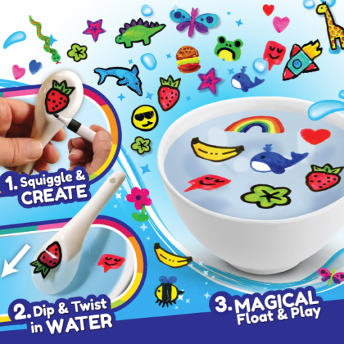 Make your own magical water creations! So fun & easy to do! Simply squiggle, dip into water and watch the magic happen! Hours of creative fun Happy planet packaging Includes 6 assorted magical water markers & ceramic spoon Make your own magical water creations with this unique crafting activity. So fun and easy to do! Use your own imagination to colour the ceramic spoon then simply dip into water and watch the magic happen. Includes six assorted magical water markers, and ceramic spoon. This fun sensory toy also promotes hand/eye coordination and encourages creativity and imagination. Amaze your friends and play with your creations. Magical, fun & challenging. Squiggle and create! Perfect for children who like magic and art!