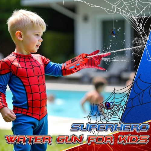 Wrist-Mounted Water Blaster: Designed to be worn on the wrist, this toy lets kids shoot water just like a superhero by pressing their fingersHand-Activated Spraying: Simply press the trigger with your fingers to release a cool water stream, making outdoor water battles more fun and immersiveReusable: Includes a reusable water bottle that easily attaches to the shooter, ensuring non-stop fun without the need for extra refills or disposable partsSecure & Adjustable Fit: Features a durable, adjustable strap to keep the blaster in place, providing a snug and comfortable fit for kids of different agesSummer Fun: A must-have water toy for pool parties, beach days, backyard games, and outdoor activities. Great for interactive play, encouraging kids to stay active and engaged