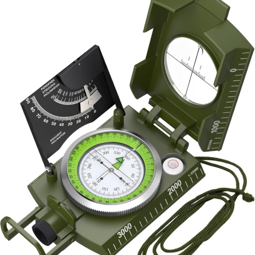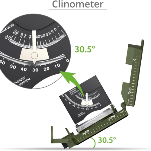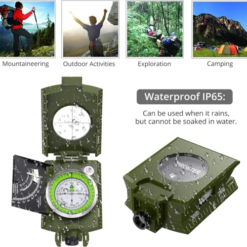 Sighting Compass for Hiking Survival: 330grams professional metal compass with allows you to read datas directly, and the Vertical Lubber line of the sighting optic improves its accuracy and decreases its errorsMilitary Navigation Compass with Fluorescent: Luminous magnet arrow and compass card allows you to read data in dark environment after absorbing enough sunshine. The luminous effect is really convenient to use at nightCompass with Inclinometer: This is also a clinometer, enable to measure height and slopesSurvival and Camping Compass: Foldable metal lid, Floating compass dial with 360° scale, Adjustable prism lens, Waterproof ShakeproofMetal Brujula Compass for Camping Hiking: Capable of working under extreme weather condition, suitable for Camping, Climbing, Boating, Exploring, Hunting, Hiking, Geology and Other Outdoor Activities
