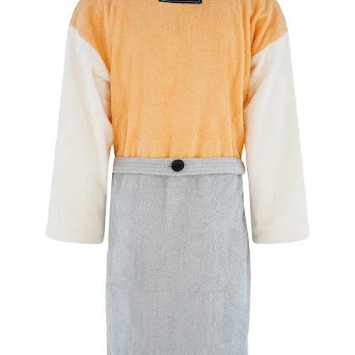 Stylish bathrobe and a real eye-catcher. Made of fluffy 100% cotton that is certified according to Oeko Tex Standard 100. Comfortable on the skin and functional as usual. The two side pockets offer space for utensils such as shampoo or brush or your cold hands. With the practical button on the back you can fix the belt so that it cannot slip out of the loops on the side. The certified cotton material is particularly fluffy and skin-friendly. Sustainability and naturalness in the selection of raw materials play a major role for us – not just for the sake of your skin. Whether after showering – during sports and at home, in the leisure pool, in the thermal baths, during water sports, in the sauna, in the fitness studio, while camping, etc. Your WAVE HAWAII bathrobe always keeps you warm and doesn’t leave you standing in the wet.