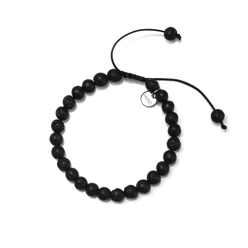 Wax cord bracelet made of lava stone beads.