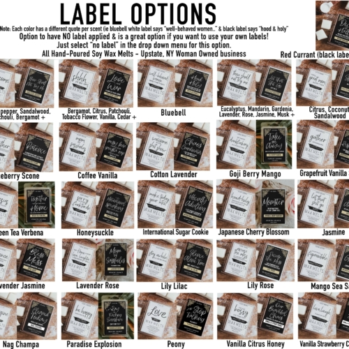 The gift that will bring a smile & laugh to anyone that comes into your store & reads them. Irresistible impulse buy! Soy Scented Wax Melts with Multiple Label options. View sample pic to see what the white & black label says for each scent. Perfect gift for mothers day, fathers day, gift for best friends, for graduation and so much more with the endless sayings! Hand-poured in small batches Our vegan dye free soy wax melts at a cooler temperature & slower. This allows an extended clean melt at a slower rate, releasing the captivating scent at a more leisurely pace, and giving the soy wax melt a long-lasting experience of a strong scent throw. Fragrance oils or pure essential oils all phthalate free. 2.5oz Container 6 Cubes 100% USA Grown Soy Wax Gluten, Phthalate, Lead Free Non-Toxic, Cruelty Free