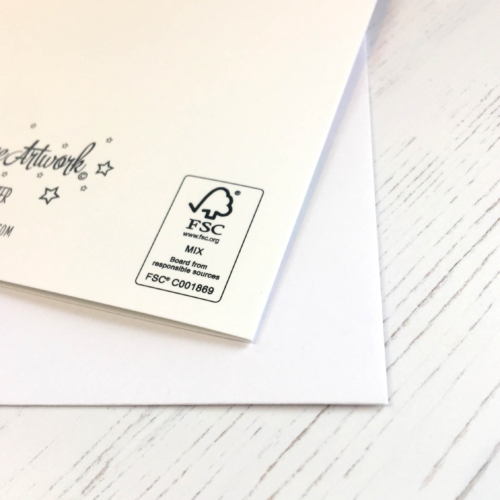 Beautifully printed on FSC rated 300gsm card and supplied with a FSC white envelope in a biodegradable cello bag.