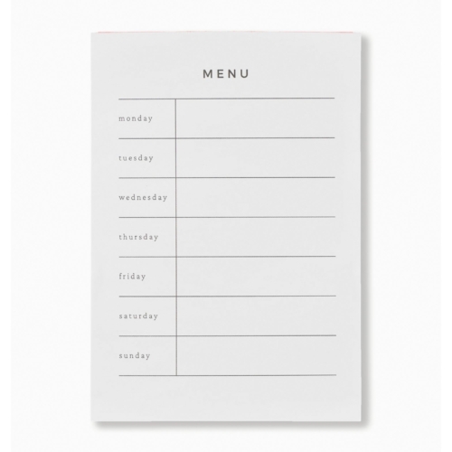 Planning meals for a growing family isn’t easy, but this weekly menu notepad makes the job a bit easier! Stay organized by writing down the week’s menu on this thick, high-quality paper. (No bleed-through here!) Display the notepad on our beautiful weekly menu stand, made from solid pine wood and a brass clip. Finally, you can eliminate those constant “What’s for dinner?” questions once and for all! Durable paper notepad with no bleed-through 7 days on each page + 26 pages = 6 months of meal planning Order multiple notepad refills for years of easy meal planning! Display with our weekly menu stand Free standard shipping