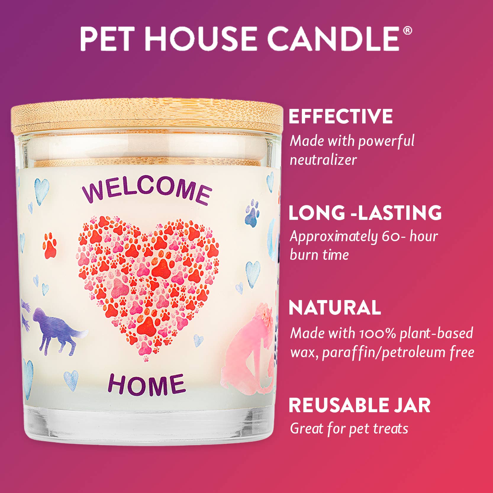 Welcome Home is an inviting fragrance blending almonds, french vanilla, tonka bean, clover honey and cherry blossom. It is the perfect gift for anyone welcoming a pet to their family.***All 9 oz. candles ship in cases of 12. You can mix a case with up to two fragrances (six units per fragrance).***One Fur All Products may not be sold on Amazon, Ebay or other 3rd party websites.Whether theyre greeting you at the door or curling up with you at night, pets are a part of our family. They bring comforting joy to any situation. So, when a pet passes, its never easy to cope with the loss.Designed to provide soothing comfort, our Furever Loved Pet Memorial Candle will fill your home with a light and comforting fragrance that combines an array of floral and citrus scents balanced with a hint of citrus honey and golden vanilla. Made with renewable resources like 100% natural plant-based wax and a cotton wick, youll enjoy up to 60 hours of burn time without any black smoke or soot!