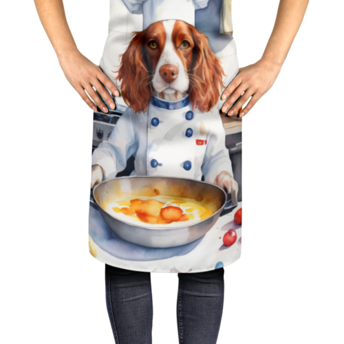 Apron featuring breed specific Welsh Springer Spaniel artwork. Elevate your cooking, baking, and grilling experiences with our versatile Kitchen or BBQ Apron. This Bib Style apron isn’t just limited to culinary activities – it also serves as an excellent baking apron, artist apron, server apron, gardening apron, or even a dog grooming apron. The apron showcases vibrant full-color artwork contributed by one of our talented artists, bringing a dash of style to your daily tasks. With dimensions of approximately 27″W x 30″H, it provides ample coverage to protect your clothing from spills and splashes. Our apron is meticulously crafted from 100% Ultra Spun Polyester, known for its durability and lightweight nature. The apron comes with white tie straps, ensuring a comfortable and adjustable fit for all. It’s a perfect choice for kitchen apron enthusiasts, whether you are a woman or a man. Designed for easy maintenance, this apron is fully machine washable. The quick-drying polyester material actively reduces staining, keeping your apron looking fresh and new for longer. Our beautifully designed apron isn’t just a functional kitchen accessory – it’s a fashion statement in the culinary world!