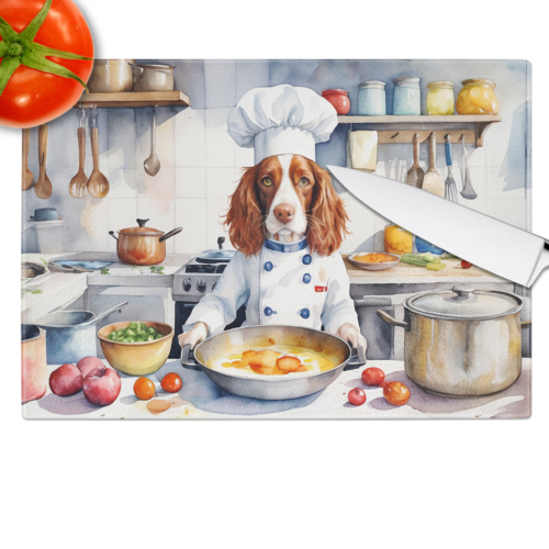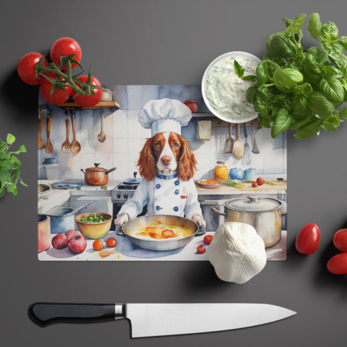 Glass Cutting Board featuring breed specific Welsh Springer Spaniel artwork. Introduce your kitchen to the vibrant, large Decorative Glass Cutting Board from Caroline’s Treasures. Crafted from resilient tempered glass, this board is not only a utilitarian necessity but also a colorful art piece. With its generous dimensions of 15 inches in height and 12 inches in length, it offers ample space for all your cutting needs. Every piece showcases captivating artwork from distinguished artists, bringing an aesthetic edge to your kitchen. Beyond its attractive design, this cutting board ensures your countertop stays pristine and unscathed, owing to its heat-resistant properties. Engineered with user convenience in mind, it features non-skid feet for stability, and rounded corners for additional safety. Its robust construction renders it virtually unbreakable, guaranteeing longevity. The board comes with protective feet bumpers, maintaining its position during use. This product is recommended to be hand washed only. Proudly printed and assembled in the United States, this cutting board exemplifies superior craftsmanship. With Caroline’s Treasures’ Decorative Glass Cutting Board, you’re investing in a blend of functionality and artistic flair.
