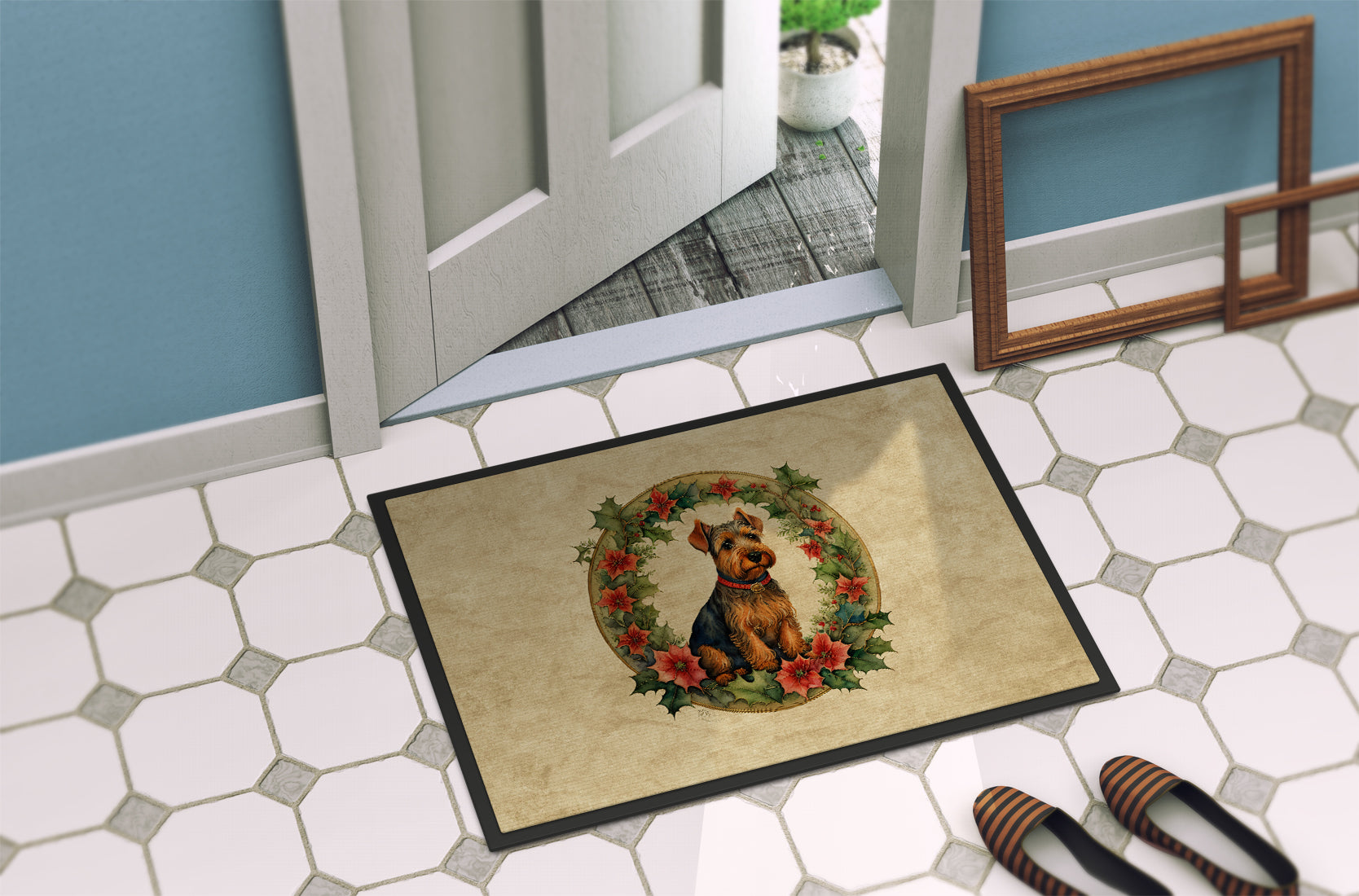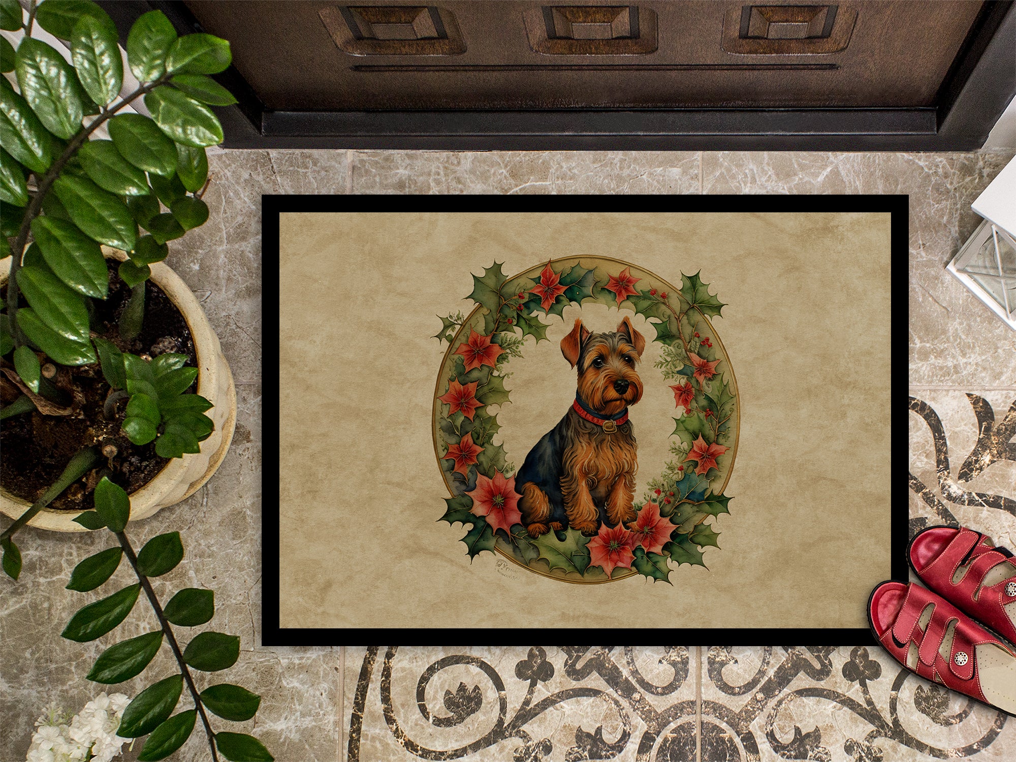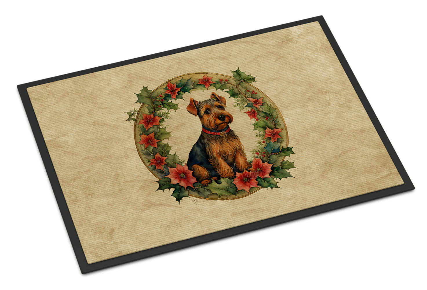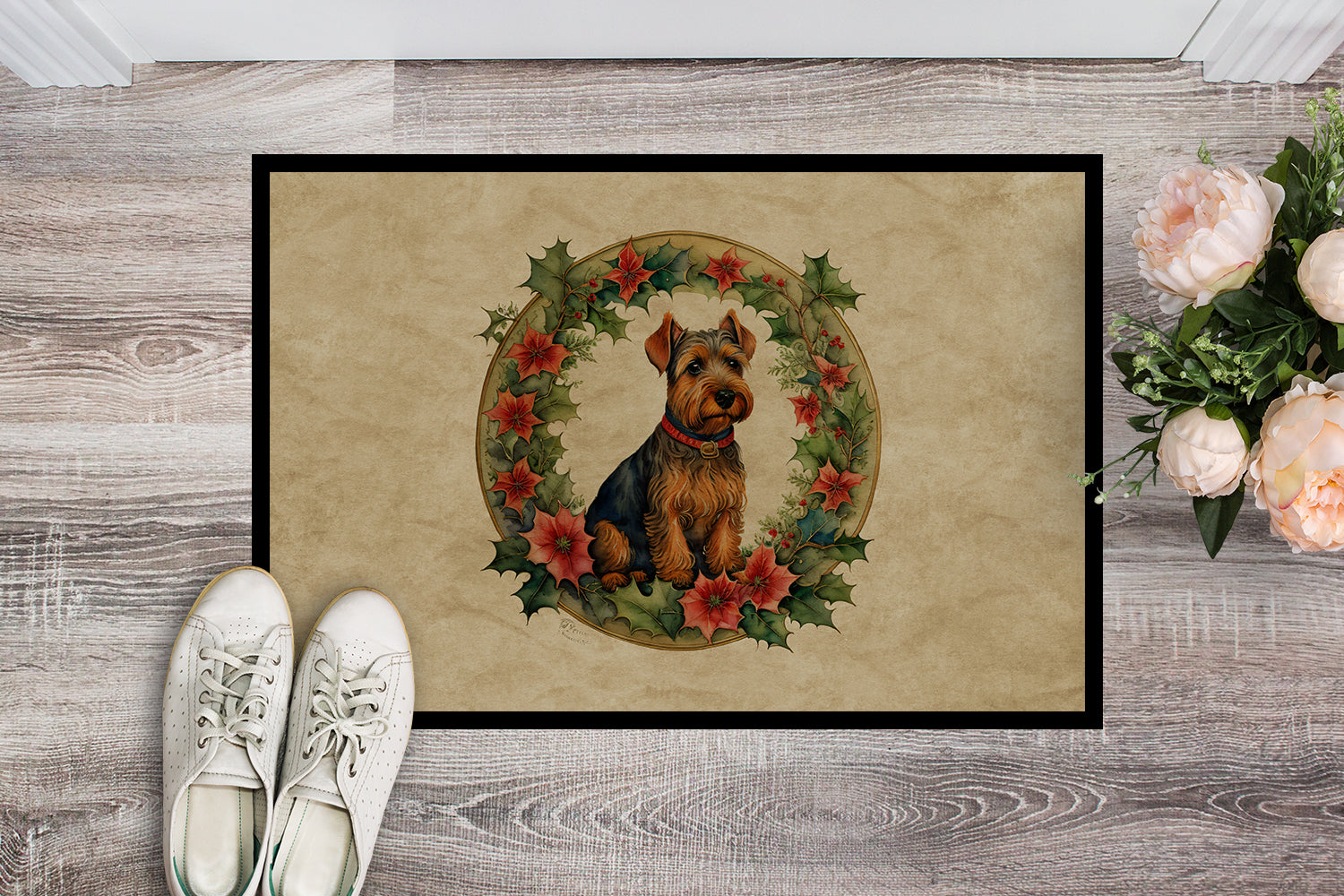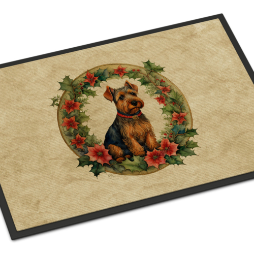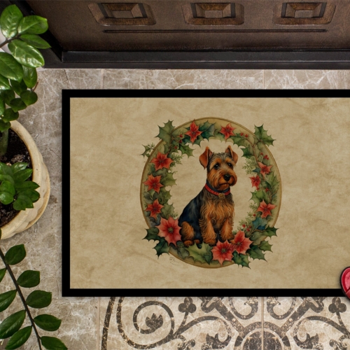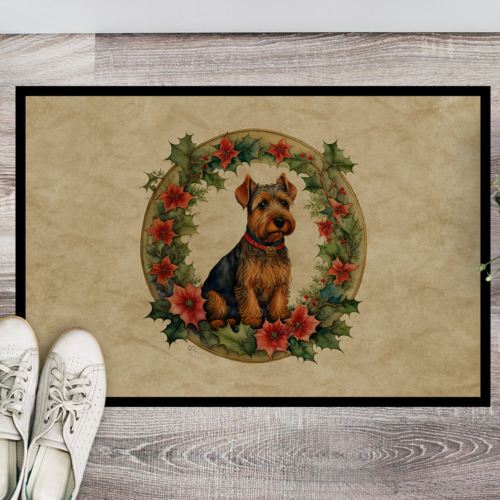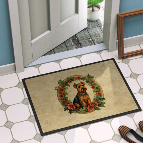 Welsh Terrier Christmas Flowers Doormat