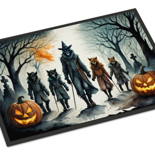 Celebrate Halloween with this Halloween Doormat. Welcome your guests in style with our Artwork Door Mat, designed to withstand almost any weather condition. This mat, measuring approximately 24 by 36 inches, is held together by durable black binding tape. Its top layer, composed of polyester felt, is dyed with the eye-catching image you see on the mat. A few layers below provide the mat with stability, while its rubber bottom is stamped to help prevent slipping and ensures safety. Our mat works wonderfully as both an indoor or outdoor door mat. For cleaning, simply hose it off with water or use a power washer – no need for any cleaner that produces suds. Avoid scrubbing with a brush, instead, opt for the vacuum on floor setting. Designed manufactured and printed in the USA, this mat is a perfect addition to your porch, outdoor kitchen, entryway, or any indoor space. Its unique design makes it a charming decorative rug that greets your guests and adds a stylish touch to your home decor.