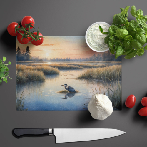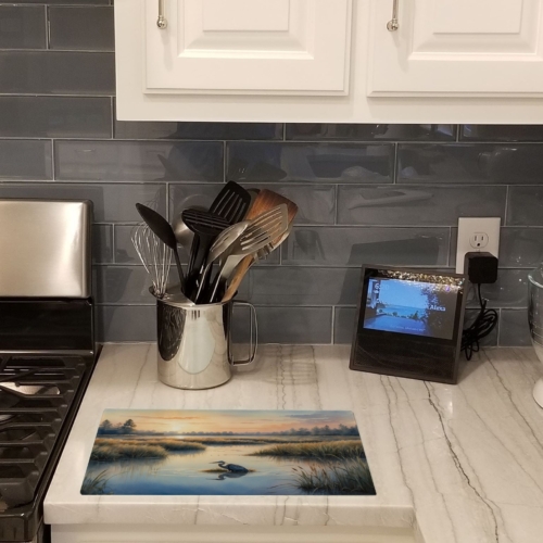 Glass Cutting Board featuring breed specific Blue Heron artwork. Introduce your kitchen to the vibrant, large Decorative Glass Cutting Board from Caroline’s Treasures. Crafted from resilient tempered glass, this board is not only a utilitarian necessity but also a colorful art piece. With its generous dimensions of 15 inches in height and 12 inches in length, it offers ample space for all your cutting needs. Every piece showcases captivating artwork from distinguished artists, bringing an aesthetic edge to your kitchen. Beyond its attractive design, this cutting board ensures your countertop stays pristine and unscathed, owing to its heat-resistant properties. Engineered with user convenience in mind, it features non-skid feet for stability, and rounded corners for additional safety. Its robust construction renders it virtually unbreakable, guaranteeing longevity. The board comes with protective feet bumpers, maintaining its position during use. This product is recommended to be hand washed only. Proudly printed and assembled in the United States, this cutting board exemplifies superior craftsmanship. With Caroline’s Treasures’ Decorative Glass Cutting Board, you’re investing in a blend of functionality and artistic flair.
