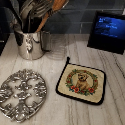 Wheaten Terrier Christmas Flowers Pair of Pot Holders