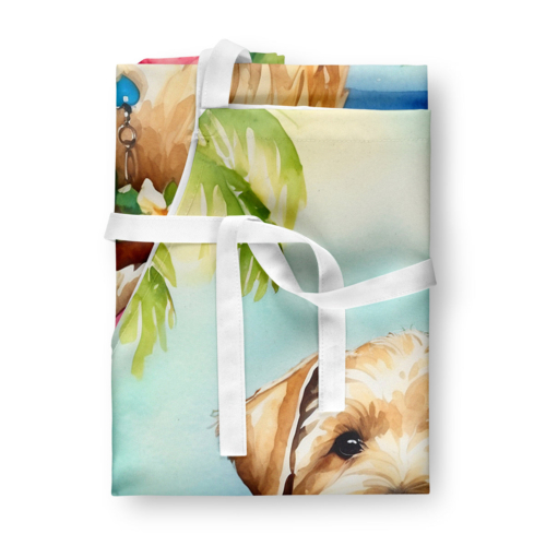 Apron featuring breed specific Wheaten Terrier artwork. Elevate your cooking, baking, and grilling experiences with our versatile Kitchen or BBQ Apron. This Bib Style apron isn’t just limited to culinary activities – it also serves as an excellent baking apron, artist apron, server apron, gardening apron, or even a dog grooming apron. The apron showcases vibrant full-color artwork contributed by one of our talented artists, bringing a dash of style to your daily tasks. With dimensions of approximately 27″W x 30″H, it provides ample coverage to protect your clothing from spills and splashes. Our apron is meticulously crafted from 100% Ultra Spun Polyester, known for its durability and lightweight nature. The apron comes with white tie straps, ensuring a comfortable and adjustable fit for all. It’s a perfect choice for kitchen apron enthusiasts, whether you are a woman or a man. Designed for easy maintenance, this apron is fully machine washable. The quick-drying polyester material actively reduces staining, keeping your apron looking fresh and new for longer. Our beautifully designed apron isn’t just a functional kitchen accessory – it’s a fashion statement in the culinary world!