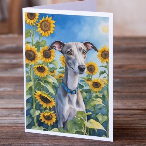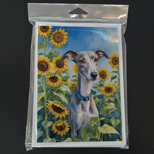 Whippet in Sunflowers Greeting Cards Pack of 8
