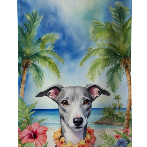 Kitchen Towel featuring breed specific Whippet artwork. Experience the perfect blend of aesthetic appeal and functional excellence with our Plush Velour Kitchen Towels. These are not your ordinary decorative kitchen towels that gather dust. Instead, they are designed to be as practical as they are stylish. The front layer of our towel is constructed from a minky plush polyester, known for its durability and color retention. Unlike conventional kitchen towels, the artwork on our towels is dyed directly into the fabric, ensuring vibrant colors that last. Polish your glassware to a brilliant sparkle using the plush front side of the towel. Flip to the back, crafted from 100% cotton terry loop, to exploit its exceptional absorbency for drying dishes or wiping down counters. Our kitchen towels redefine the concept of functional art, offering lasting quality that maintains the towel’s shape over time. Measuring 15 inches by 25 inches and weighing 2.3 lbs per dozen, these towels deliver an overwhelming sensory experience with their soft, plush, and smooth texture. The edges are meticulously finished with binding, enhancing their durability and visual appeal. For your convenience, these towels are machine washable and can be dried on low heat. After the first wash, the top fabric becomes even softer and fluffier, eliminating the need for ironing. Treat your kitchen to the luxury and functionality it deserves with our plush velour kitchen towels.