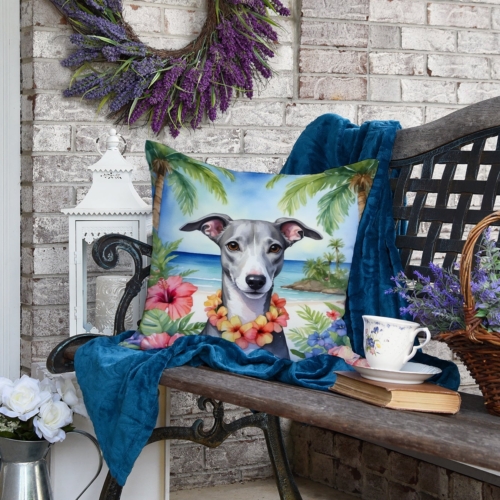 Throw Pillow featuring breed specific Whippet artwork. Revitalize your outdoor or indoor living space with Caroline’s Treasures 18×18 Fabric Decorative Pillow. With a generously sized dimension of approximately 18 inches by 18 inches, this pillow makes a comfortable and aesthetic addition to any seating area. Made from a unique, water-resistant material developed by Caroline’s Treasures, the pillow sham is 100% polyester fabric that’s durable and ready to weather any condition. Its vibrant, full-color artwork will not fade over time as it is dyed with color-fast dyes. Whether you place it on your patio furniture, porch, veranda, or indoor couch, its soft canvas fabric ensures a cozy experience. The pillow is handcrafted in the United States, featuring a sham created from three pieces of fabric and a polyester insert for enduring shape and overstuffed comfort. Despite being robustly built to endure the outdoors, it is as soft and snug as your favorite indoor cushions. Please note, as all our pillows are handmade, sizes may vary slightly, adding to the charm of this unique decorative item.