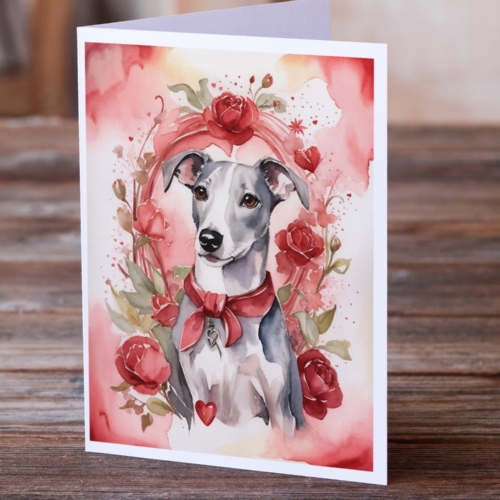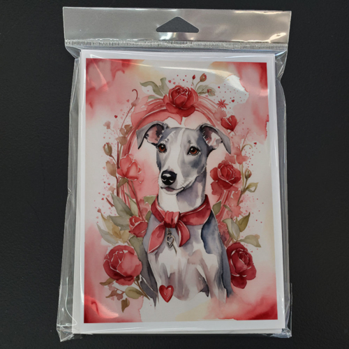 Whippet Valentine Roses Greeting Cards Pack of 8