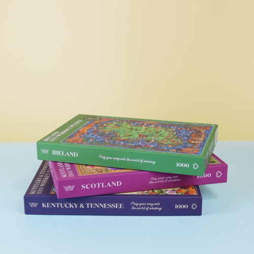 Go on an immersive whiskey journey across the lush landscapes that produce three of the world’s most iconic spirits. This trio bundle features puzzles of Scotland, Ireland, and Kentucky/Tennessee, taking you to the heart of Scotch, Irish, and Bourbon country. Learn how local distilleries in each region bring craftsmanship together to create unique whiskies reflective of their terroir. The Scotland puzzle highlights the key whisky regions and their famous distilleries. Ireland showcases renowned whiskey spots like Midleton and Bushmills. And Kentucky/Tennessee lets you explore the homeplaces of Jack Daniel’s, Maker’s Mark, and more! With this whisky trio, you’ll gain a true understanding of how place and process shape these incredible spirits. Slàinte, cheers, and cheers again to discovering new depths of whiskey knowledge! Contains: Scotland Whisky Ireland Whiskey Kentucky/Tennessee Whiskey Each puzzle is 1000 pieces and comes with a full-size poster of our design and a box stand. Puzzle Dimensions: Each completed puzzle is 48 x 68 cm; 18.9″ x 26.8″ Each poster is 48 x 68 cm; 18.9″ x 26.8″ Each box is 33 x 22.7 x 3.9 cm; 12.9″ x 9.9″ x 1.5″