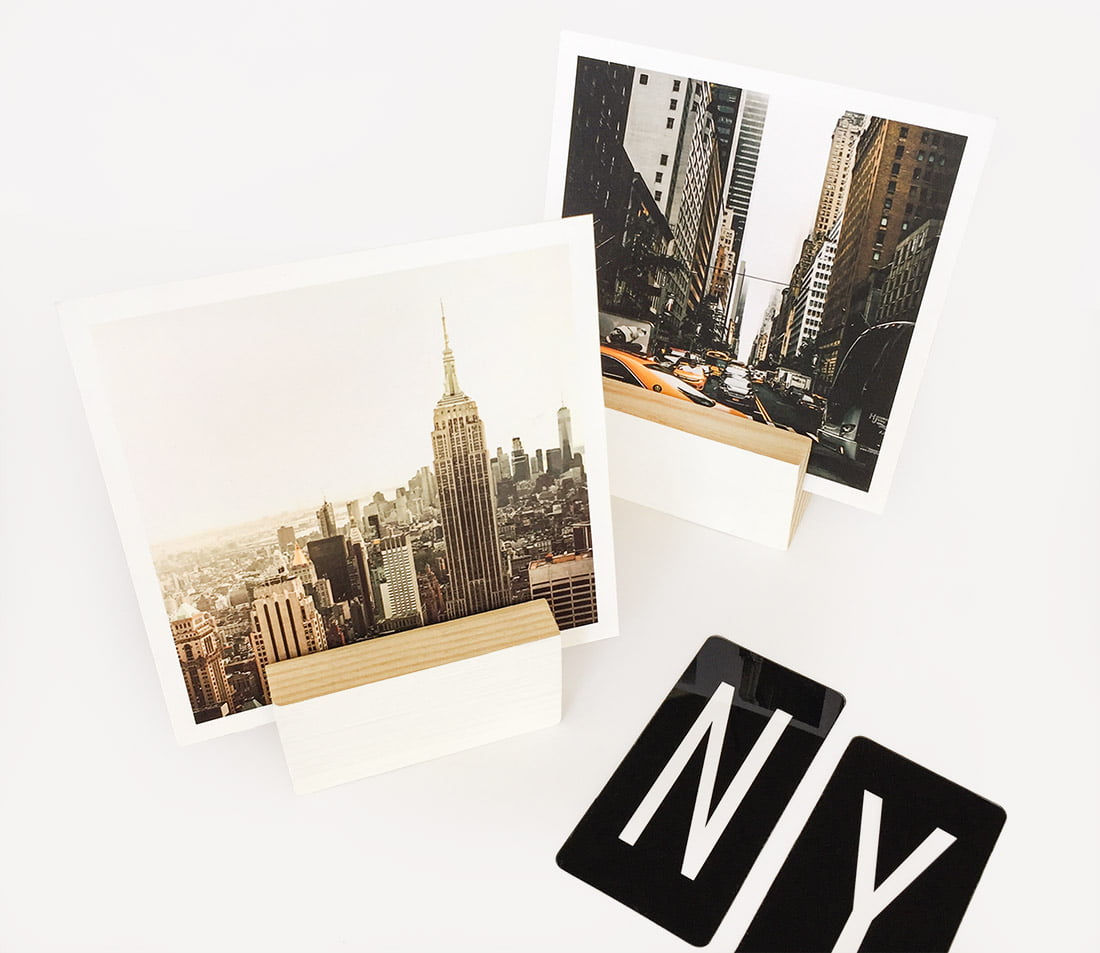 Adorable wood block photo holder with white accent color in front. This wood card holder is the perfect accessory for desk dresser or shelves. It can hold small art prints and photos of various sizes and shapes. Use it to rotate your favourite pictures or hold gift cards menus and table numbers! Paired with family photos this card holder will become a thoughtful gift. Handcrafted from solid eco-friendly wood. The groove is wide enough to accommodate different kinds of paper and photo sizes (up to 5×7). We are using 4×4 in our product shots.
