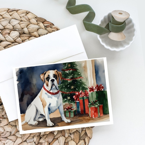 White Boxer Christmas Greeting Cards Pack of 8