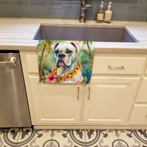 White Boxer Luau Kitchen Towel
