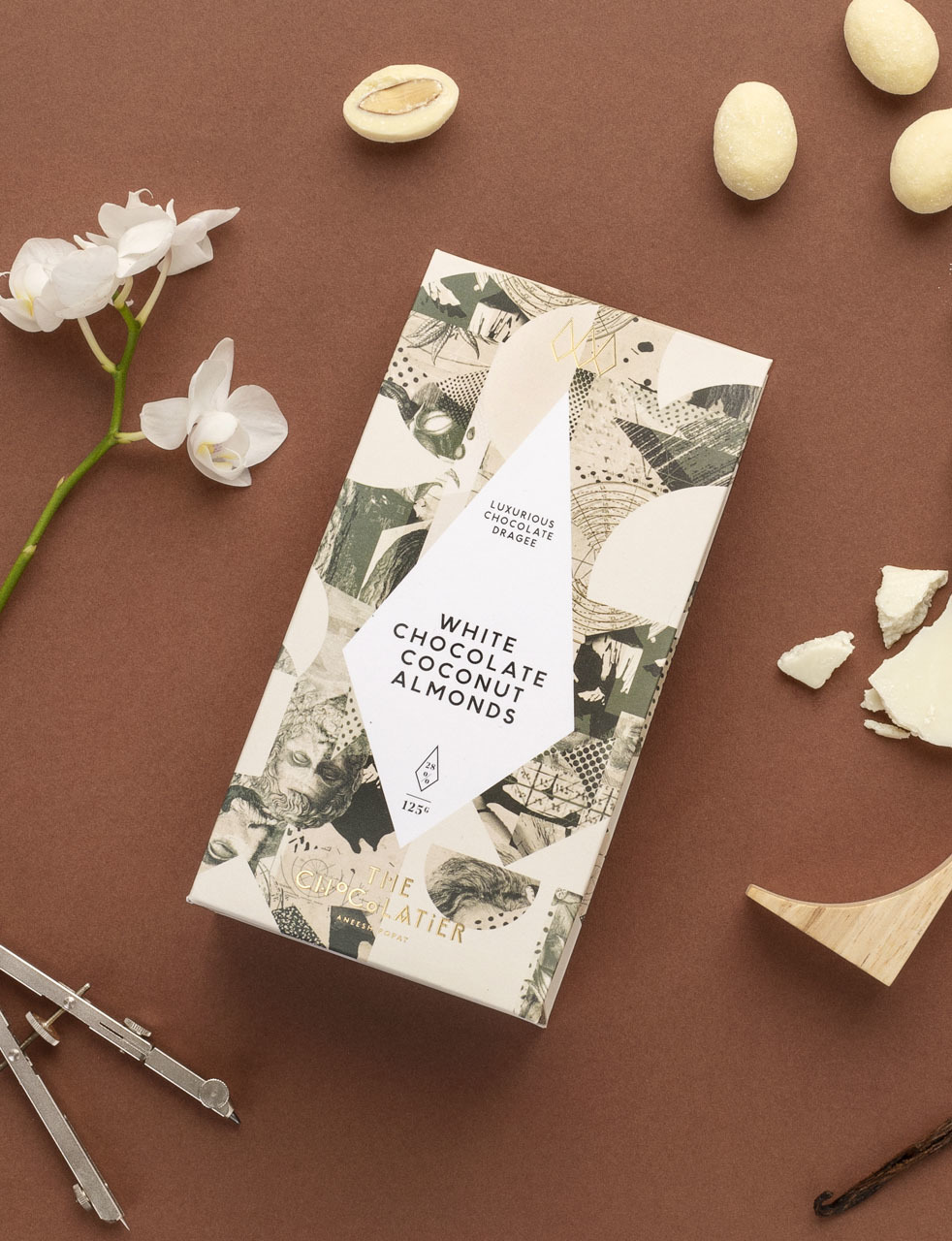 Roasted almonds covered in white chocolate and dusted in coconut powder. This heavenly treat is bountiful in tropical notes and creamy nuttiness.