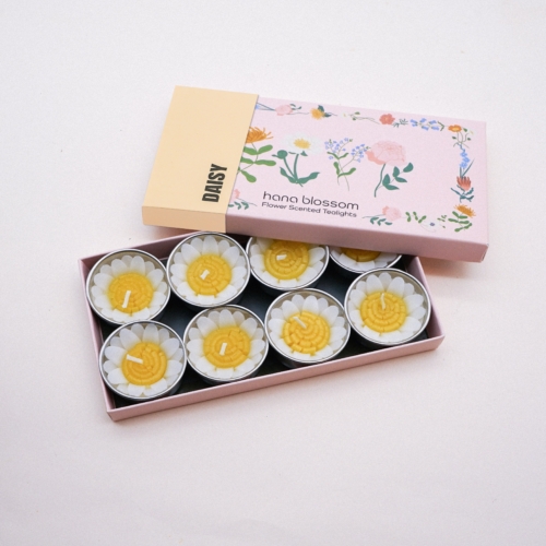 We love these sweet daisy scented tealights. Each single petal is hand cut and then form into a flower shape. Scented with Neroli essential oil a sweet, honeyed and relaxing. Come in 8 daisy tealights in a botanical garden design box. They can be used with any standard tealight holders. Ideal beautiful gift for any special occasions. 100% Handmade, vegan, cruelty free and fairly trade