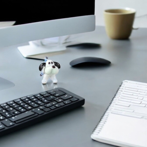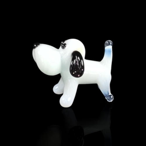 White Dog Figurine, Mini Glass Murano Quality Lampworking Glass Figurine, Hand Made In Ukraine, A Great Addition To Your Collection