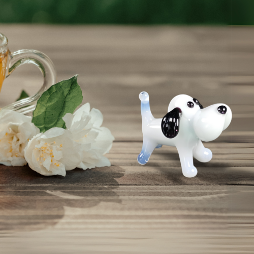 White Dog Figurine, Mini Glass Murano Quality Lampworking Glass Figurine, Hand Made In Ukraine, A Great Addition To Your Collection
