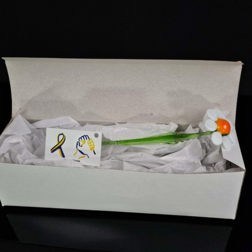 • Handcrafted In L’viv Oblast, Ukraine• Made from Ukrainian Soft Glass (NOT Borosilicate Glass)• Ships From Greensburg, PA• Approximately 6 inches long and 2 inches wide• Very Detailed Flower Including Petals and Leaves• Individually Boxed (A Unique Piece of Glass Art in Every Box)• Hypoallergenic Flower• Lasts Forever As Long As You Treat It WellMade in L’viv, Ukraine using traditional lampworking techniques, where a master artisan uses hand tools to manipulate colored glass rods under a 700+ degree flame, you get this beautiful red daisy. The daisy measures approximately 7 inches long, with an attached leaf midway up the stem and the flower head is approximately 2 inches wide, consisting of a colored center and red petals. Very detailed and beautiful glass flower made by hand with lots of love. A great gift for Valentine’s Day, Mothers Day, Birthday’s, Anniversaries, Graduations, Christmas, Easter, New Years, Secret Admirer or just letting someone know you care! Each piece is hand made using the traditional lamp-working technique. Please allow for slight variances as each piece is unique, just like you.Note: The product is made of naturally colored glass, so it may have bubbles, discoloration, etc., which are natural results of processing. The measurements may have errors. The colors of the product may differ slightly from what the pictures show.Note: The listed price is for a single flower.
