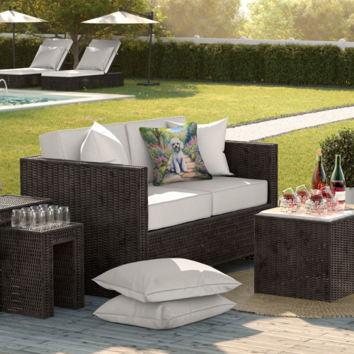 Throw Pillow featuring breed specific Poodle artwork. Revitalize your outdoor or indoor living space with Caroline’s Treasures 18×18 Fabric Decorative Pillow. With a generously sized dimension of approximately 18 inches by 18 inches, this pillow makes a comfortable and aesthetic addition to any seating area. Made from a unique, water-resistant material developed by Caroline’s Treasures, the pillow sham is 100% polyester fabric that’s durable and ready to weather any condition. Its vibrant, full-color artwork will not fade over time as it is dyed with color-fast dyes. Whether you place it on your patio furniture, porch, veranda, or indoor couch, its soft canvas fabric ensures a cozy experience. The pillow is handcrafted in the United States, featuring a sham created from three pieces of fabric and a polyester insert for enduring shape and overstuffed comfort. Despite being robustly built to endure the outdoors, it is as soft and snug as your favorite indoor cushions. Please note, as all our pillows are handmade, sizes may vary slightly, adding to the charm of this unique decorative item.