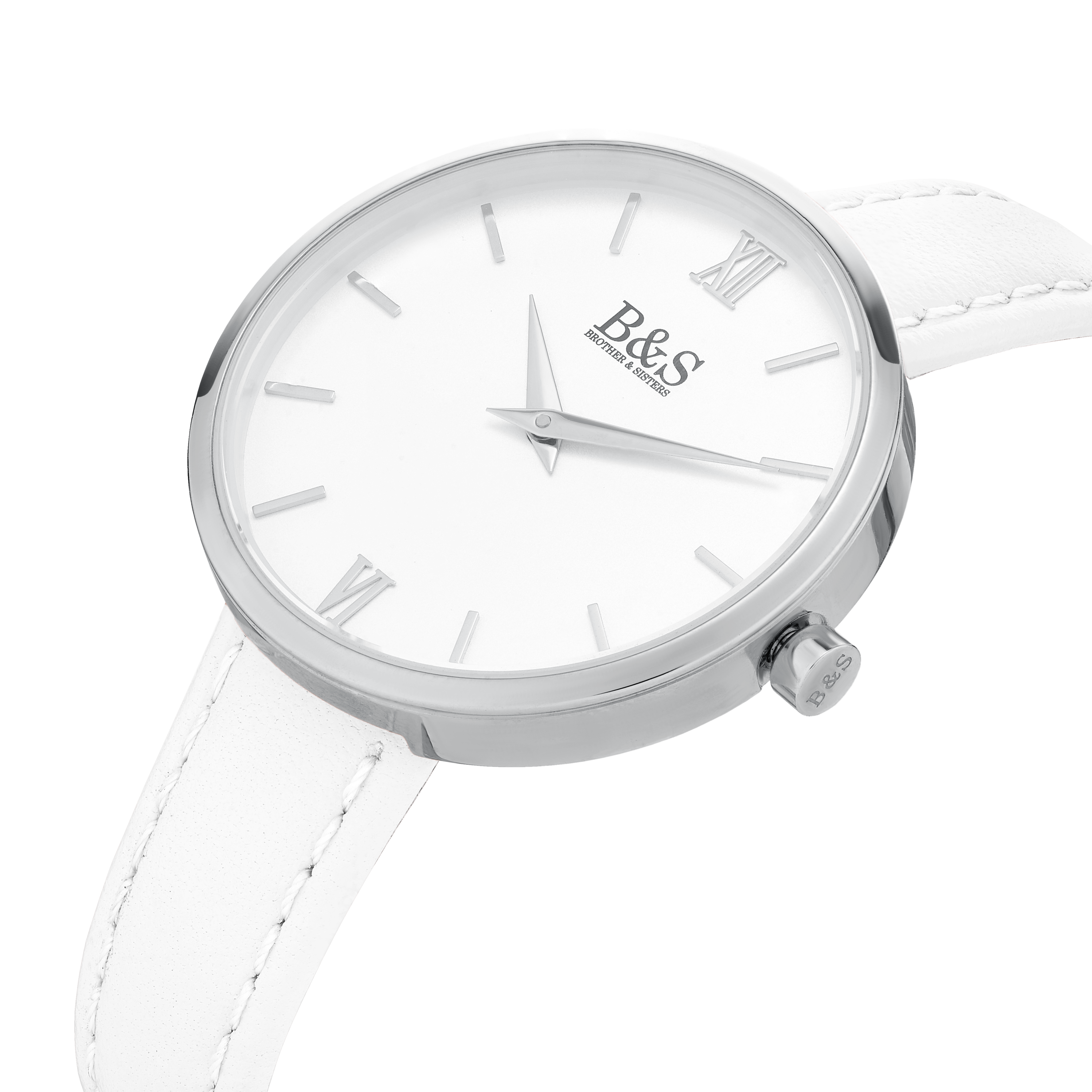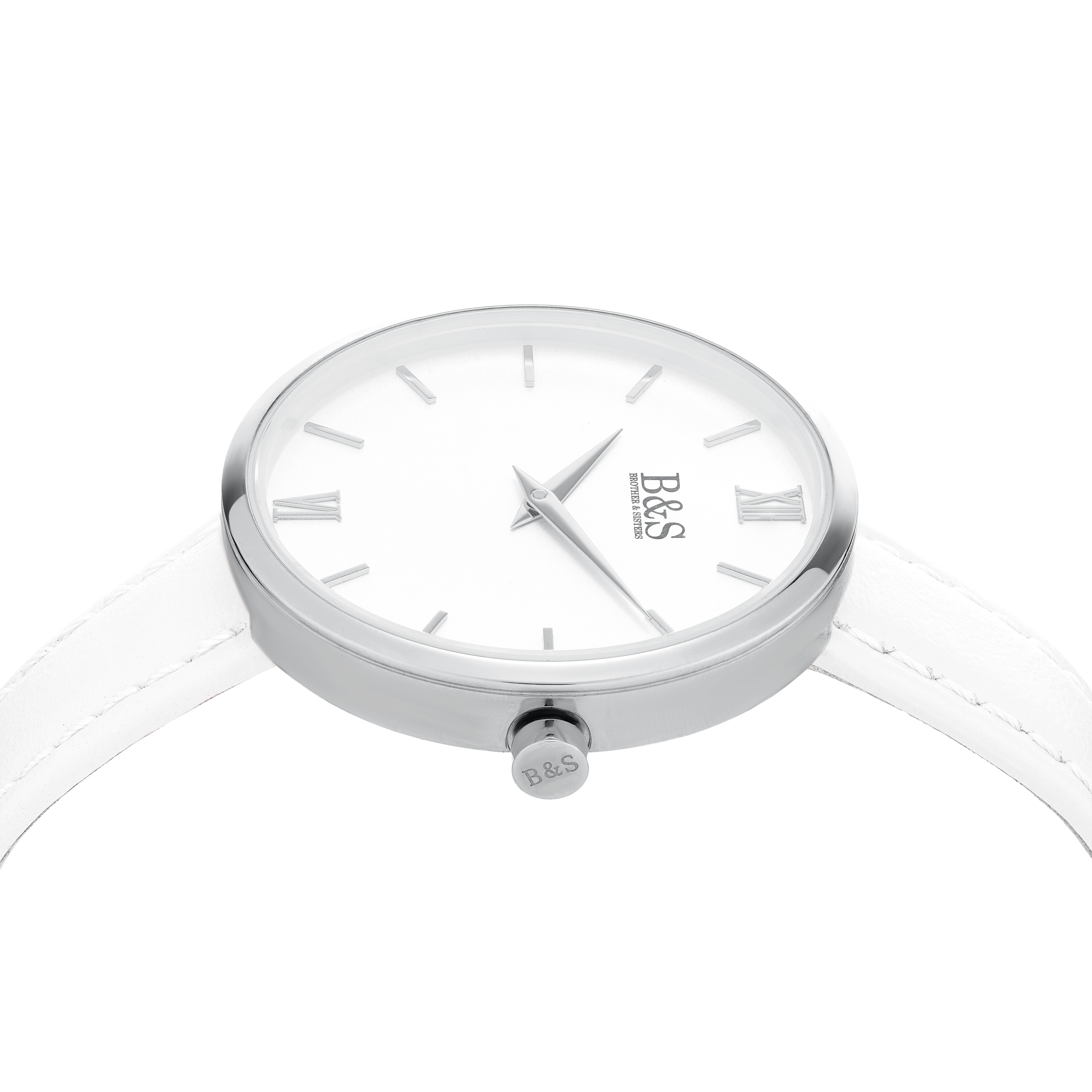 Do you want to be a white queen? So, just stop your researches right now and check this awesome white leather watch from Brother & Sisters. The White Purity watch will be the final touch of your style and everyone will be jealous of your wonderful wrist extension! Indeed, nothing beats a nice watch to bring a touch of feminine fashion to your outfit. This white watch in a circular shape, with a fashion and casual style, combines modernity, casualness, and elegance. In addition, the white color brings a classic touch and goes with all colors. As a result, it will be perfect with all the outfits you wear. It is, therefore, suitable for all women, and for all occasions, whether to go to work or for other occasions and even for free time. The stainless steel and leather used to accentuate the aesthetics of the watch, but also guarantee its hardness and good health. Its buckle clasp already defines comfort and confirms that it fits all wrists. Enjoy yourself and order your new watch now in our shop before our stock lasts!