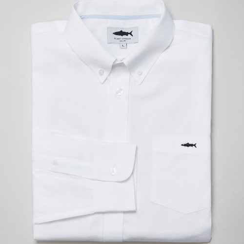 Made from 100% cotton poplin with a contrasting embroidered salmon logo on the pocket, and contrasting side seam gusset and collar and cuff placket taping. The shirts have a button collar, breast pocket and back loop and come with spare buttons in a tracing paper envelope.