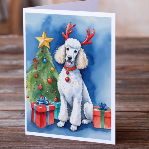 White Standard Poodle Christmas Reindeer Greeting Cards Pack of 8