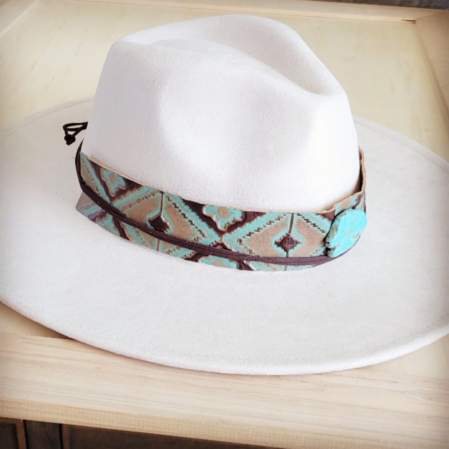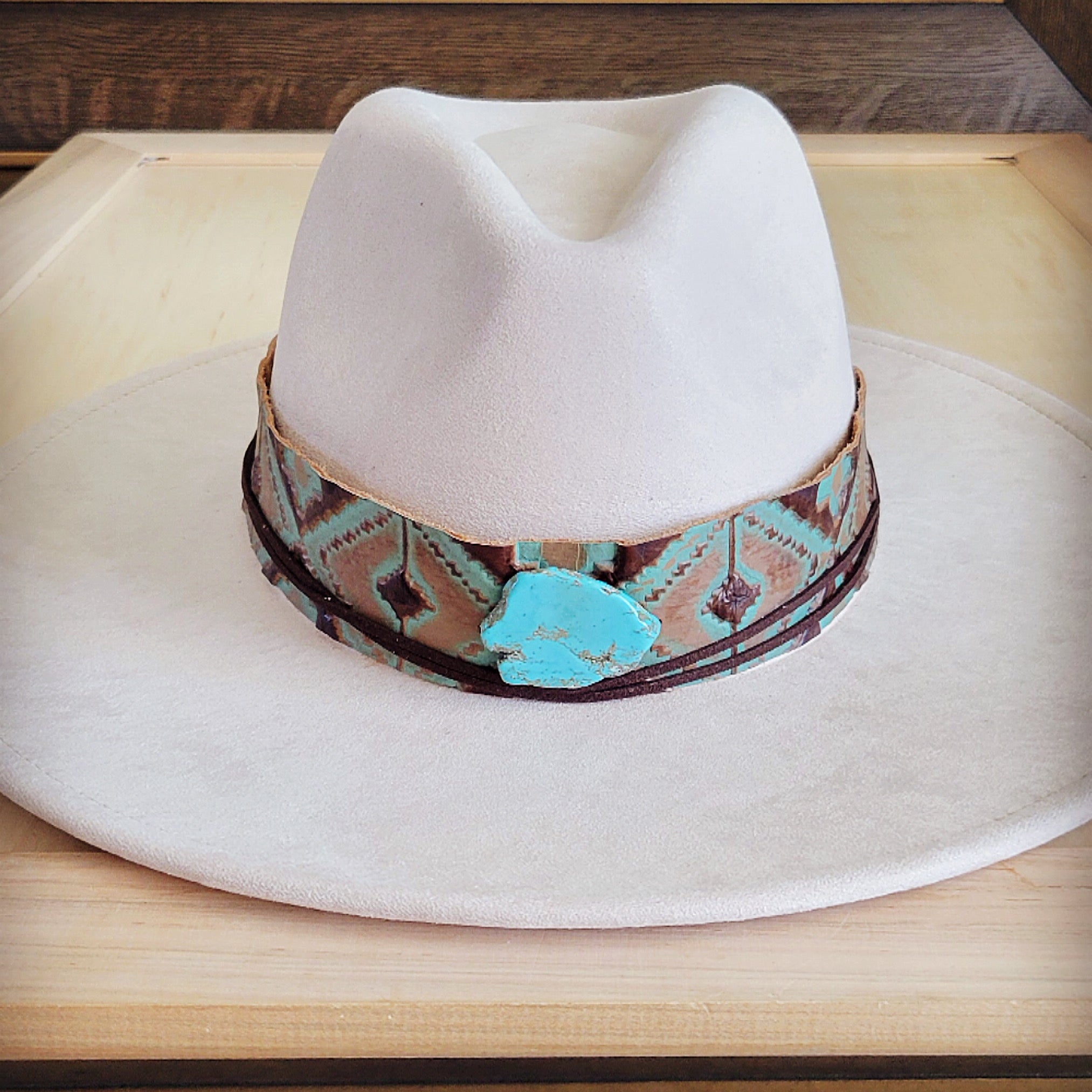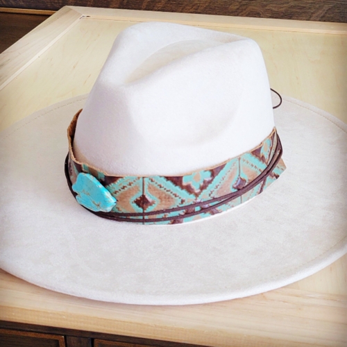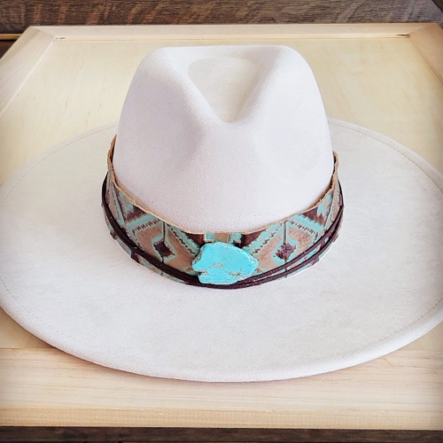 Wide Genuine Leather Turquoise Navajo Hat Band w/ Turq 953i