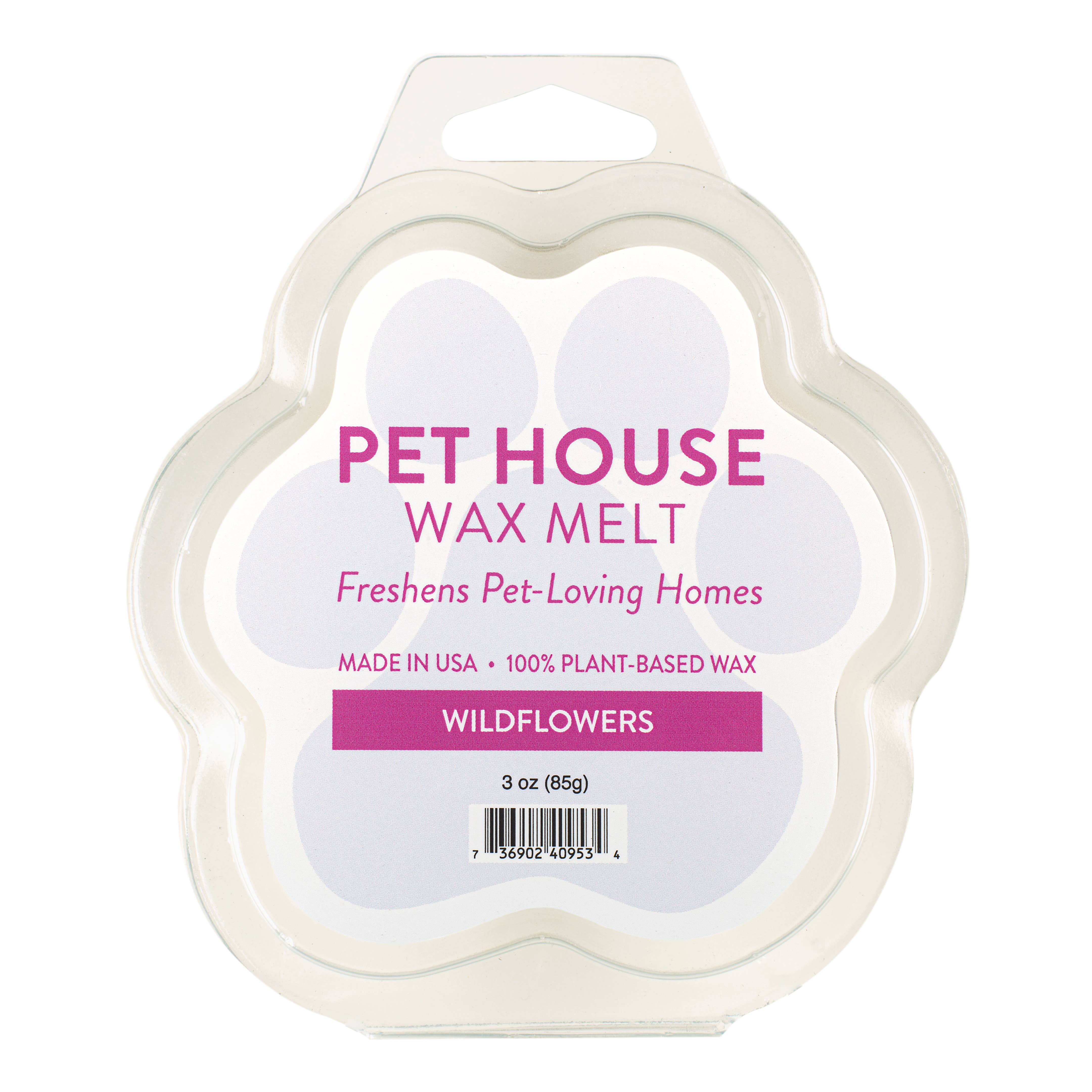 Wildflowers is a delightful arrangement of green fields of heather, hyacinth, carnations and lily of the valley. This fragrant floral blend is perfect for spring.***All wax melts ship in cases of 12. You can mix a case with up to two fragrances (six units per fragrance).***One Fur All Products may not be sold on Amazon, Ebay or other 3rd party websites.Even if you don’t have a pet odor problem, Pet House Wax Melts make every pet-loving home smell fresh and clean. When guests come to your home, you’ll be CONFIDENT that your home smells great. Our wax melts are extremely effective without overpowering fragrance.Pet House Wax Melts include the powerful combination of an effective odor neutralizer and the highest quality fragrances. Pet House Wax Melts are adorably packaged in the shape of the paw and make a great gift for any pet parent.