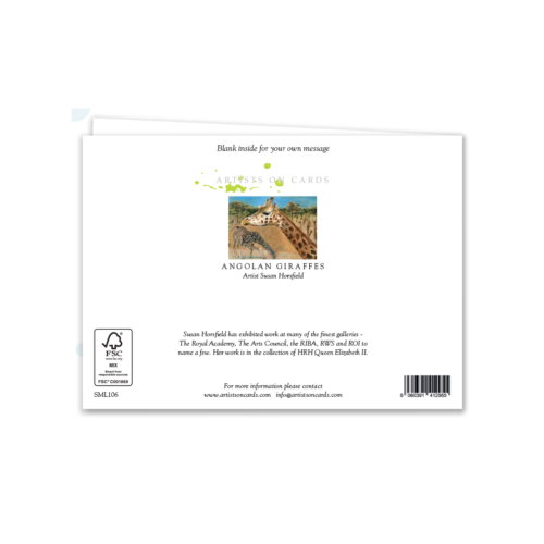 **Angolan Giraffes Animal Greeting Card – Unique animal Illustration for Any Occasion**, sold in **wholesale packs of 6** . Printed on premium FSC-certified cardstock, this 15x15cm card is ideal for animal-themed ranges.