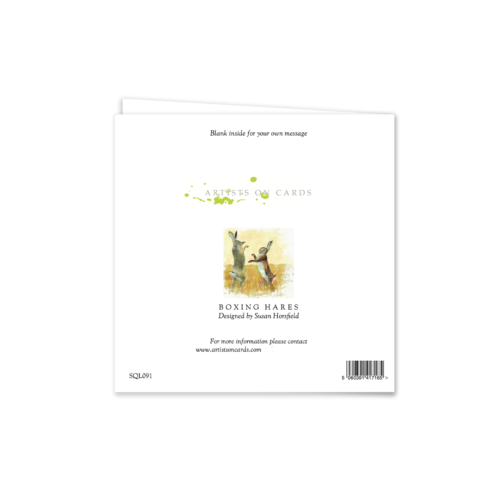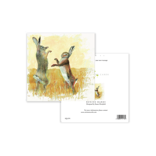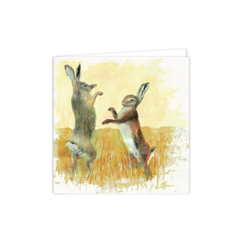 Capture the energy of the countryside with our Boxing Hares Greeting Card. Inspired by the iconic springtime dance of hares in the fields, this vibrant illustration makes a memorable choice for birthdays, thank-yous, or simply sending a smile.